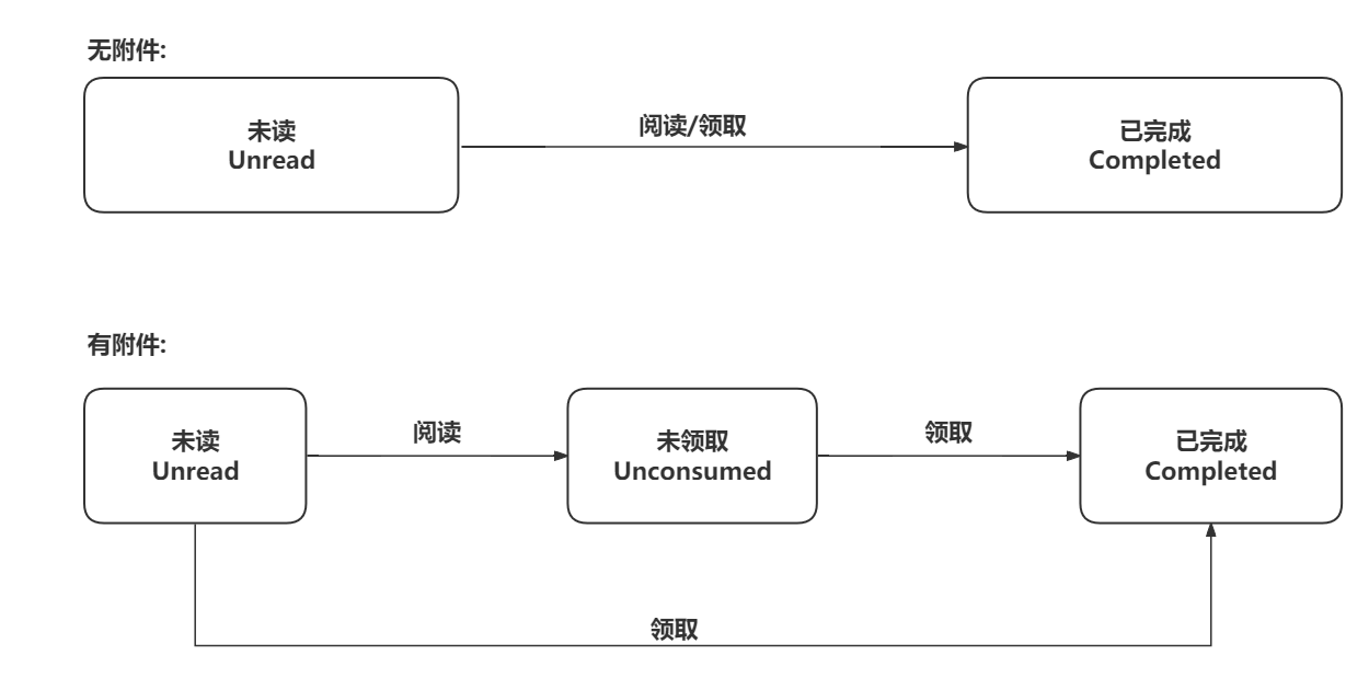 - 邮件:玩家收件箱中的邮件本身,邮件分为未读(Unread)、未领取(Unconsumed)、已完成(Completed)三个状态,玩家可以对邮件进行阅读、领取操作。